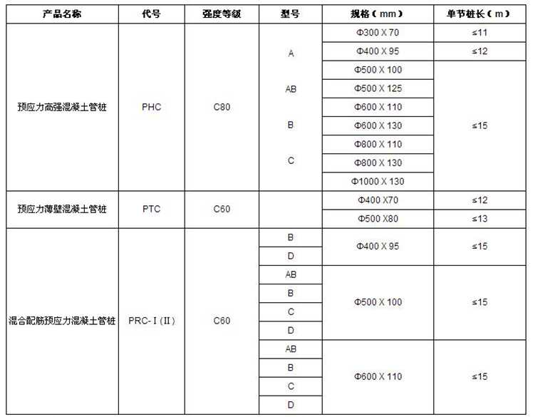 業(yè)臻管樁集團(tuán)生產(chǎn)各類預(yù)應(yīng)力混凝土管樁,直徑范圍300mm-1000mm,管樁壁厚度一般在70mm至130mm,長(zhǎng)度主要在5m至15m之間。業(yè)臻管樁生產(chǎn)的預(yù)應(yīng)力混凝土管樁(PHC)、預(yù)應(yīng)力薄壁管樁(PTC)、以及混合配筋預(yù)應(yīng)力混凝土管樁(PRC-Ⅰ(Ⅱ)),可滿足客戶不同項(xiàng)目所在區(qū)域的環(huán)境與地質(zhì)狀況需求。